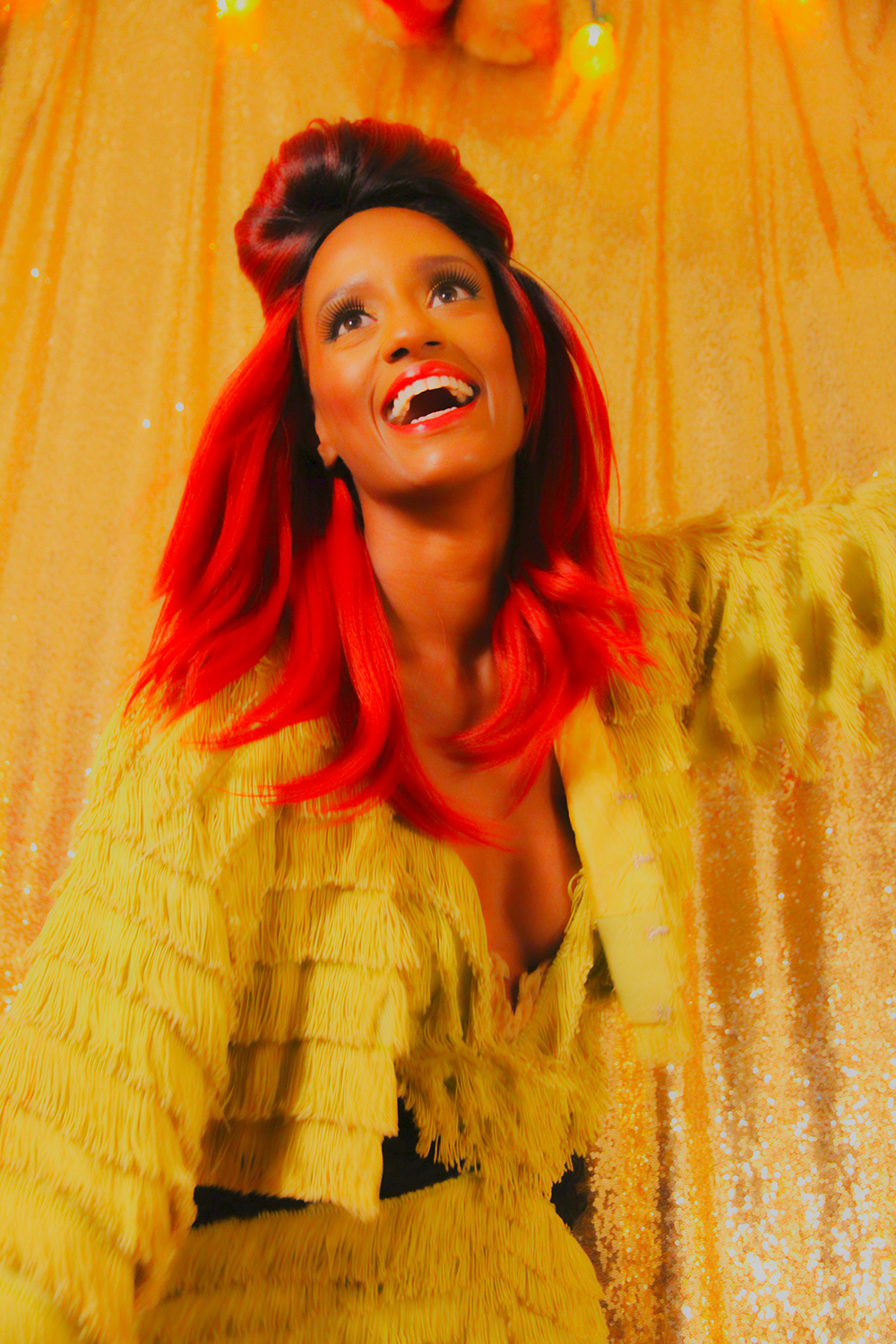 High octane erotic dancing to a gritty rockabilly tune as she dances against a blinding light to a Tiki theme backdrop.